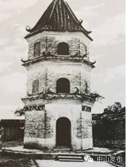 1948年拍摄的小榄高文阁塔现已不复存在,但遗址尚在,于紫荆加油站后面