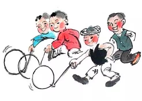 用铁丝做一个圈,然后再做一个长柄的铁钩子,推着这个铁丝圈滚着走。大家排在操场上,看谁滚得快滚得远。